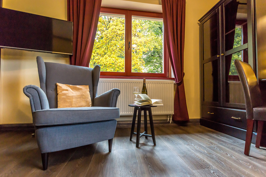 Ausgestattet mit Flachbildfernsehr, Telefon und WLAN verfügen die Nichtraucher-Zimmer über jeglichen Komfort den Sie erwarten können. Die Zimmer verfügen zudem alle über DU/WC, Kosmetikspiegel und Haartrockner. Hinzu kommt die ruhige Lage und frische Luft wo Sie tief und fest schlafen können. Das Haus mit denkmalgeschützter Hülle ist im Innern mit allem modernen Komfort der heutigen Zeit ausgestattet. Der Blick ins Grüne des Naturparks macht diesen Ort zu etwas einzigartigen, aber zugleich haben Sie den nötigen Abstand den man nach einem anstrengenden Tag braucht.
